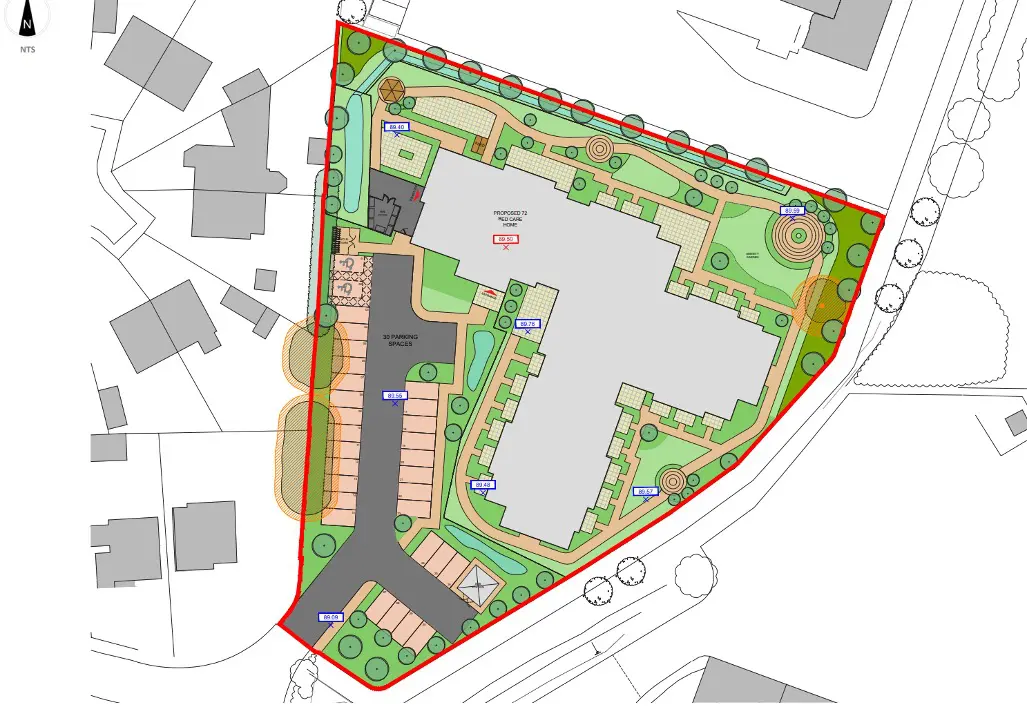 - Planning consent has been granted for a 2-3 storey, 72 bed care home.